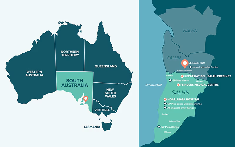 The Southern Adelaide Local Health Network (SALHN) is a key division of South Australia’s public health system, responsible for delivering hospital and community-based healthcare services to the southern suburbs of Adelaide. It manages several major hospitals, including Flinders Medical Centre, Noarlunga Hospital, and the Repat Health Precinct, as well as various mental health and rehabilitation services. SALHN’s services span acute care, aged care, mental health, palliative care, and specialist medical services, ensuring a comprehensive approach to health and wellbeing for residents in the region.