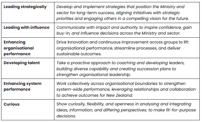 This role is assigned to the ‘Senior Leader’ category, and the following capabilities outline what is required to be successful in this category: