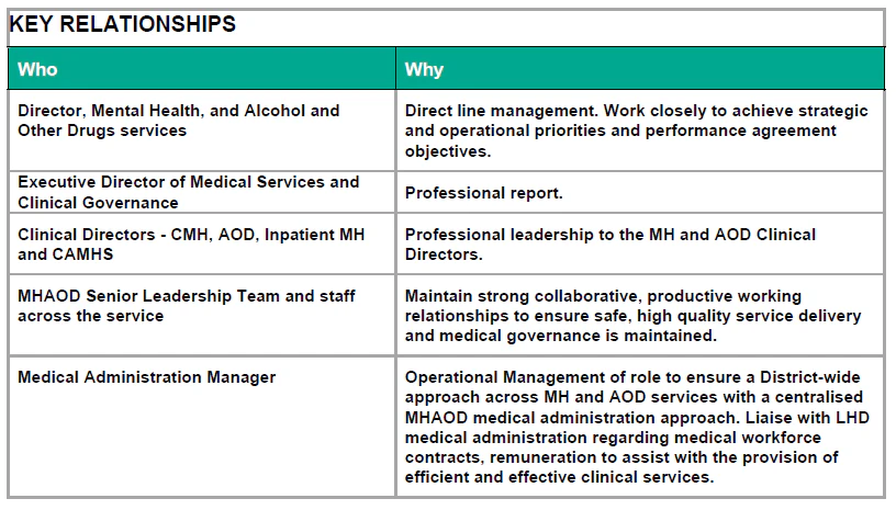 - Executive clinical leadership role shaping Mental Health and Alcohol & Other Drugs services across Northern NSW