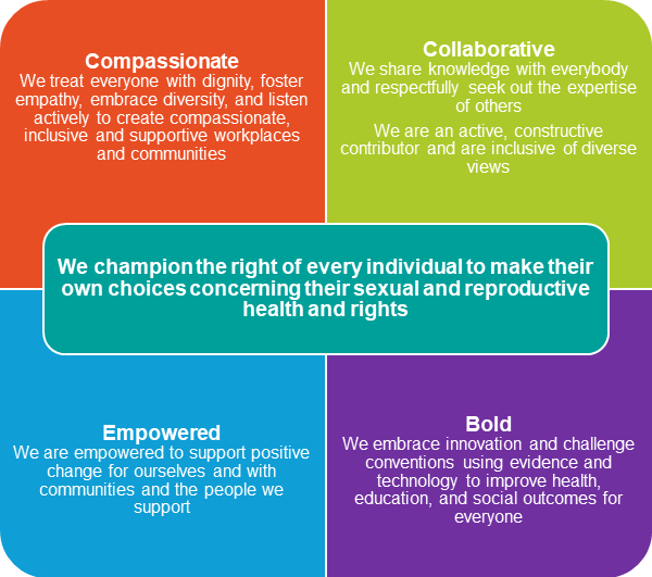 We respect the rights of our clients to make choices about their reproductive and sexual health and we treat each and every person with respect, dignity and understanding.