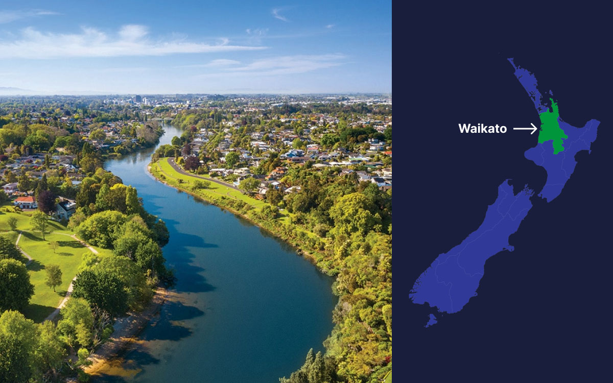 The Waikato region is located on New Zealand’s North Island, stretching from the Coromandel through Lake Taupo in the centre, heading on down to King Country in the Island’s southern half. Just under half a million people live in the area, with Hamilton the main centre – a city of innovation and technology, giving it the nickname ‘Hamiltron’.